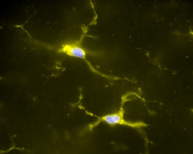 - Mikroglia sind die kleinsten Zellen des Nervensystems. Eine ihrer wichtigsten Aufgaben ist es, das umliegende Gewebe zu schützen.